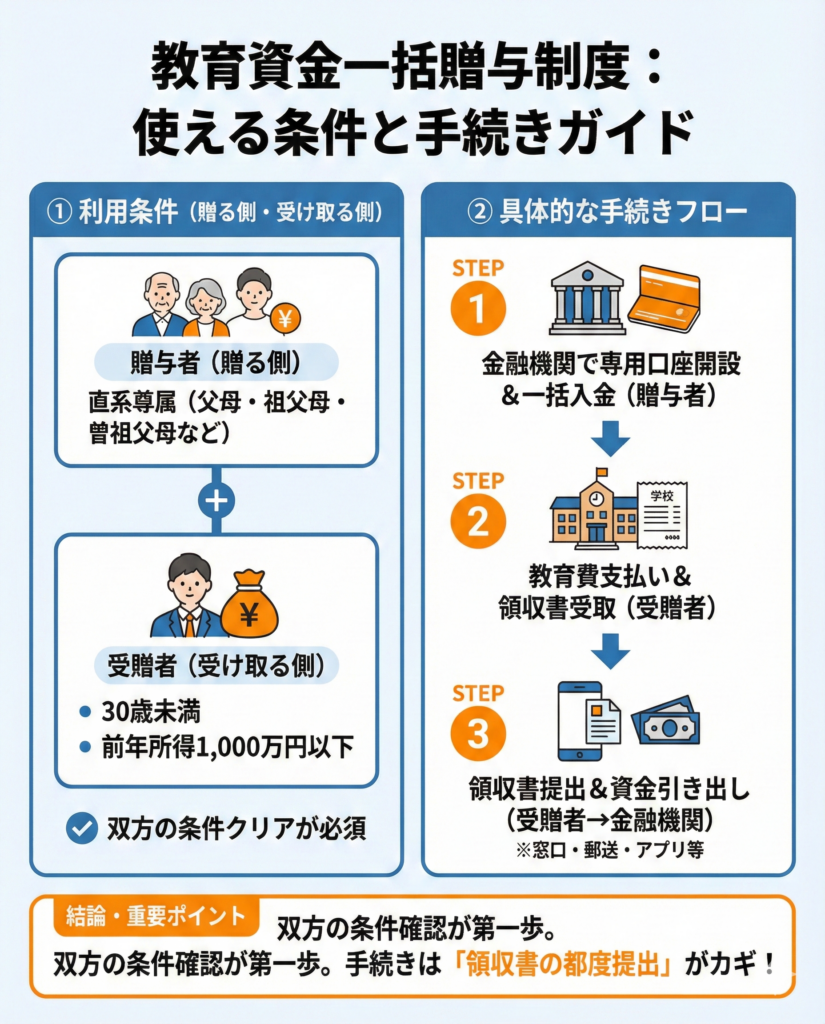 教育資金の一括贈与制度を使う条件は?