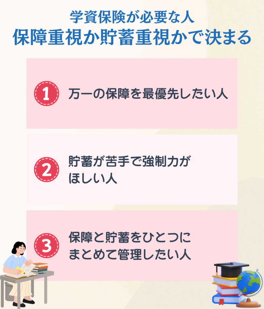 学資保険が必要な人──保障重視か貯蓄重視かで決まる