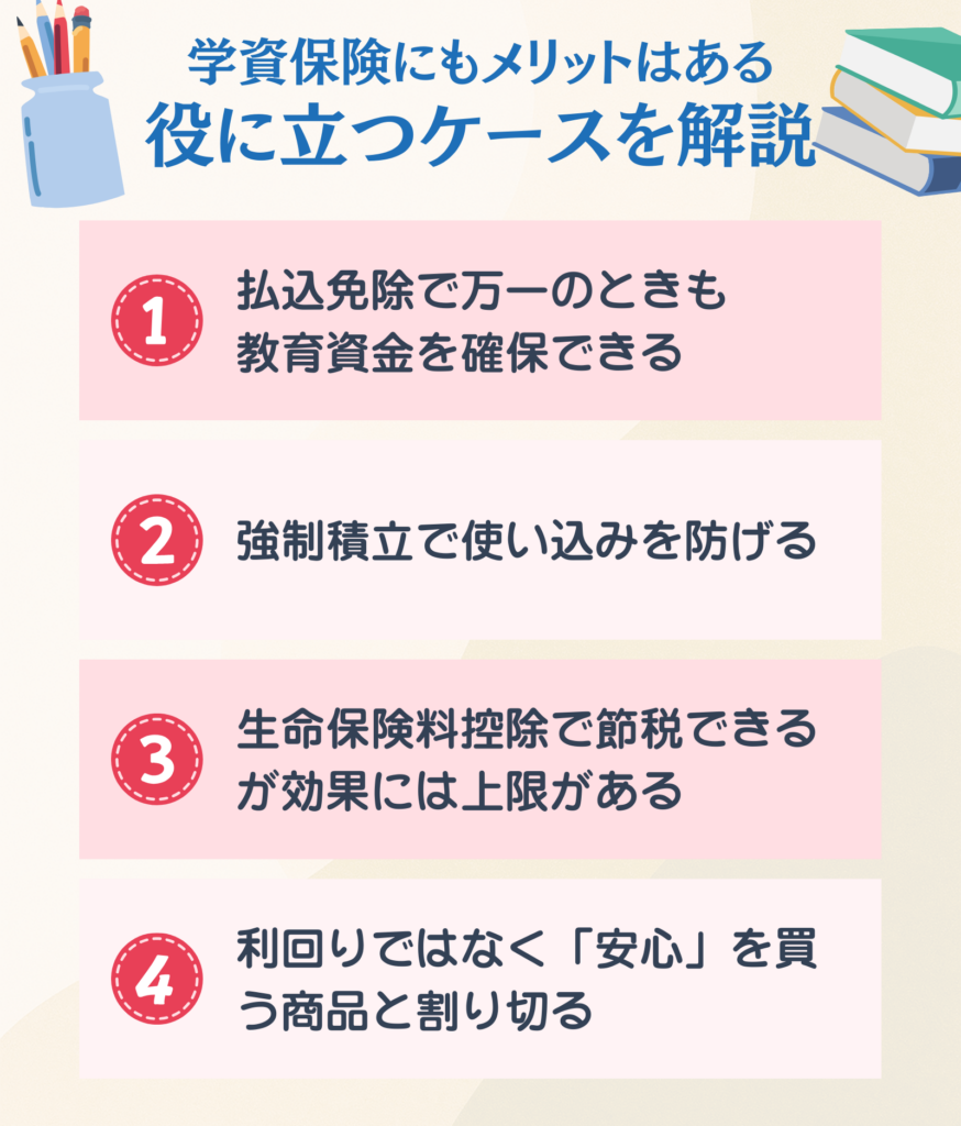 ここまでデメリットを取り上げてきましたが、学資保険がすべての家庭に不向きというわけではありません。