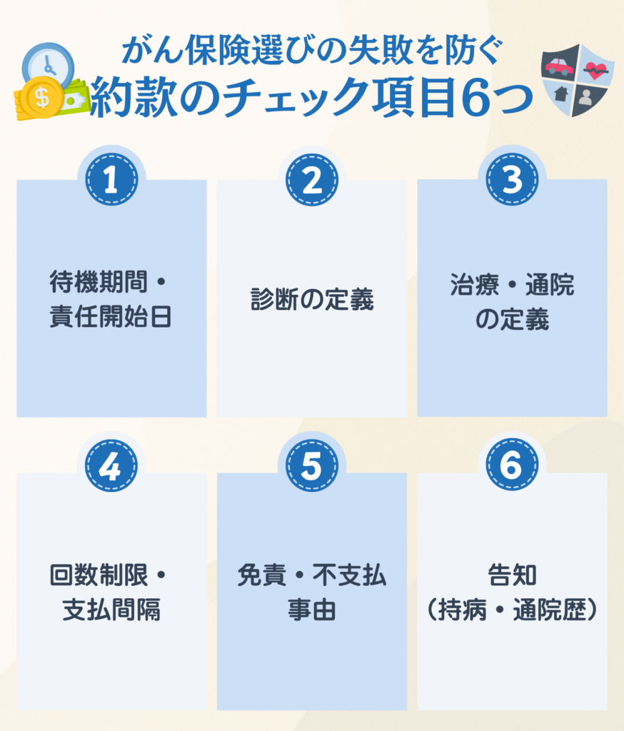 約款の「支払事由」と「免責事由」は必ず確認し、いざというとき「給付金が出ない」という事態を防いでください。