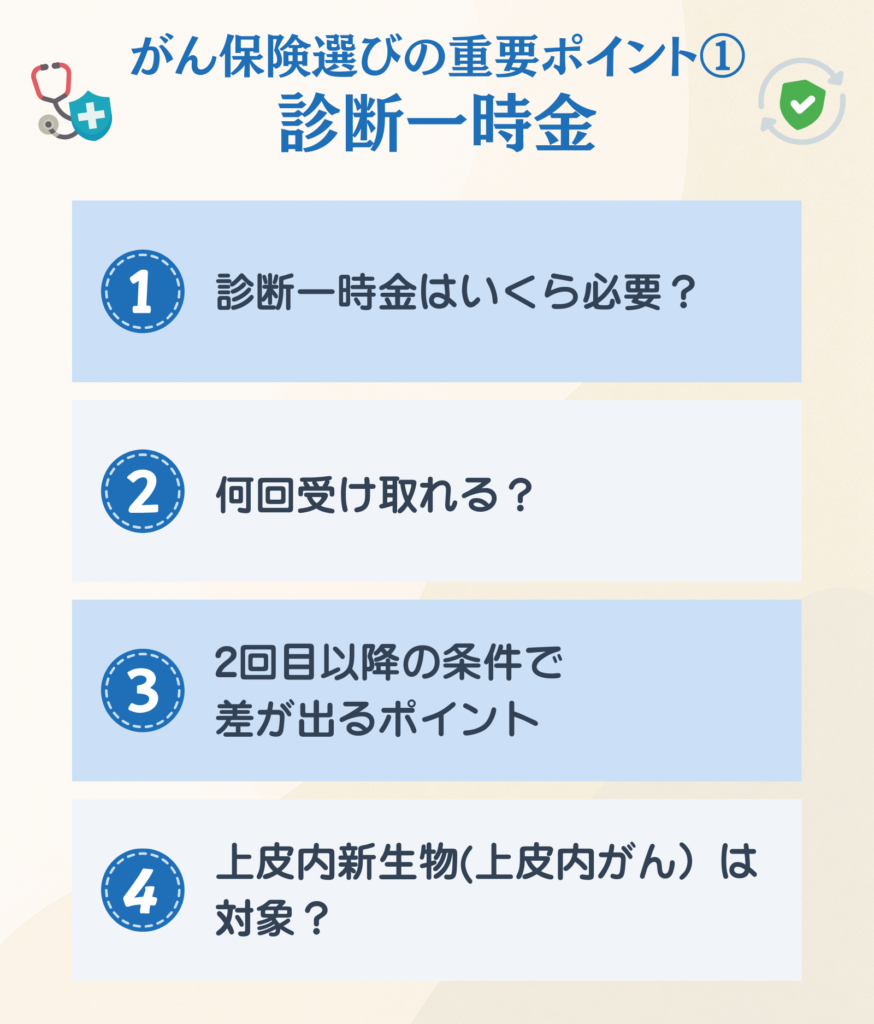 - 診断一時金の支払条件(回数・間隔・上皮内新生物)