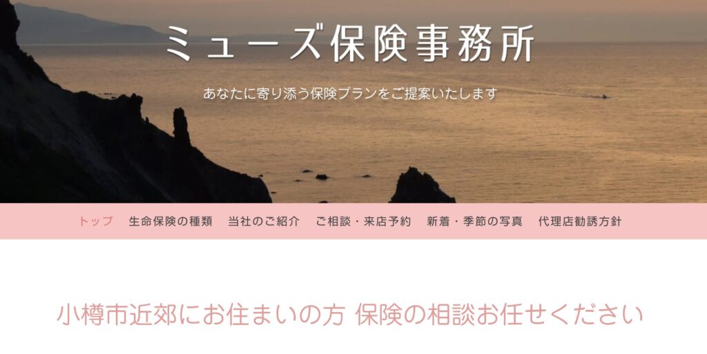 株式会社ミューズ保険事務所は、小樽市を拠点に20年以上の実績を持つ保険代理店で、生命保険・医療保険・がん保険・貯蓄保険など幅広い保険相談に対応しています。アフラック・オリックス生命・メットライフ生命の3社の保険会社の商品を扱っており、その3社から保険料、保障内容比較しながら、自分の予算に合った保険プランを提案できる点が強みです。来店時には完全個室で、ゆっくり相談できますし、訪問相談にも対応しており、寿都や苫小牧まで遠方へも伺います。顧客のライフスタイルに合わせた柔軟な相談体制を整えています。創業以来1000人以上の顧客をサポートしており、病院の情報や最新治療の地域密着型のきめ細かなサポートも特徴です。