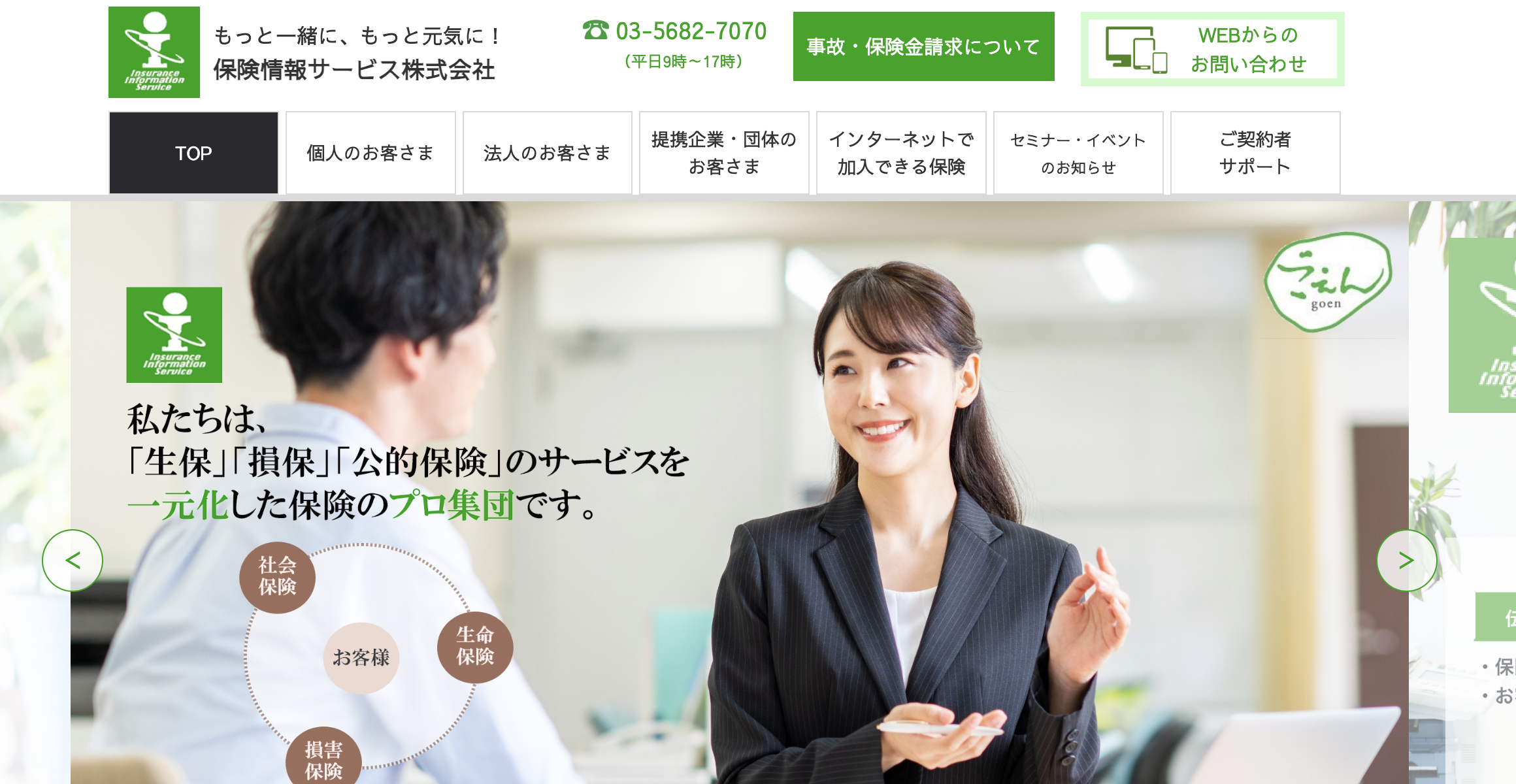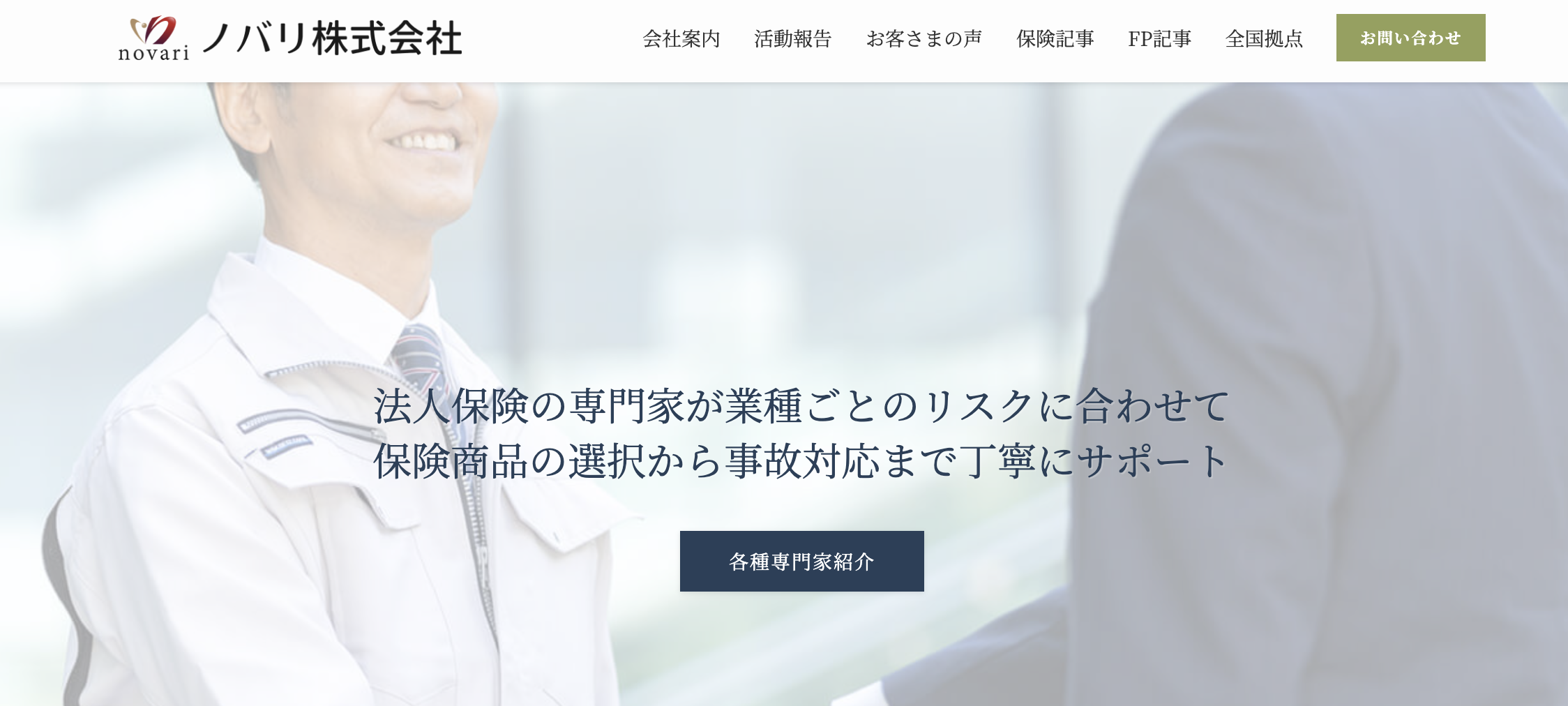 「企業向けリスクマネジメント」を前面に出し、法人向けの相談導線を強く打ち出す保険代理店です。問い合わせはフォームに加えて電話窓口があり、平日9〜17時の営業時間が明確。FAQでは生命保険の取扱いも明言されており、法人の賠償責任や福利厚生、役員保障などと合わせて検討したい企業に向きます。個人でも、家計やライフイベントに合わせた保障設計を相談したい場合の選択肢になりますが、取扱社数は公開情報から確認できませんでした。