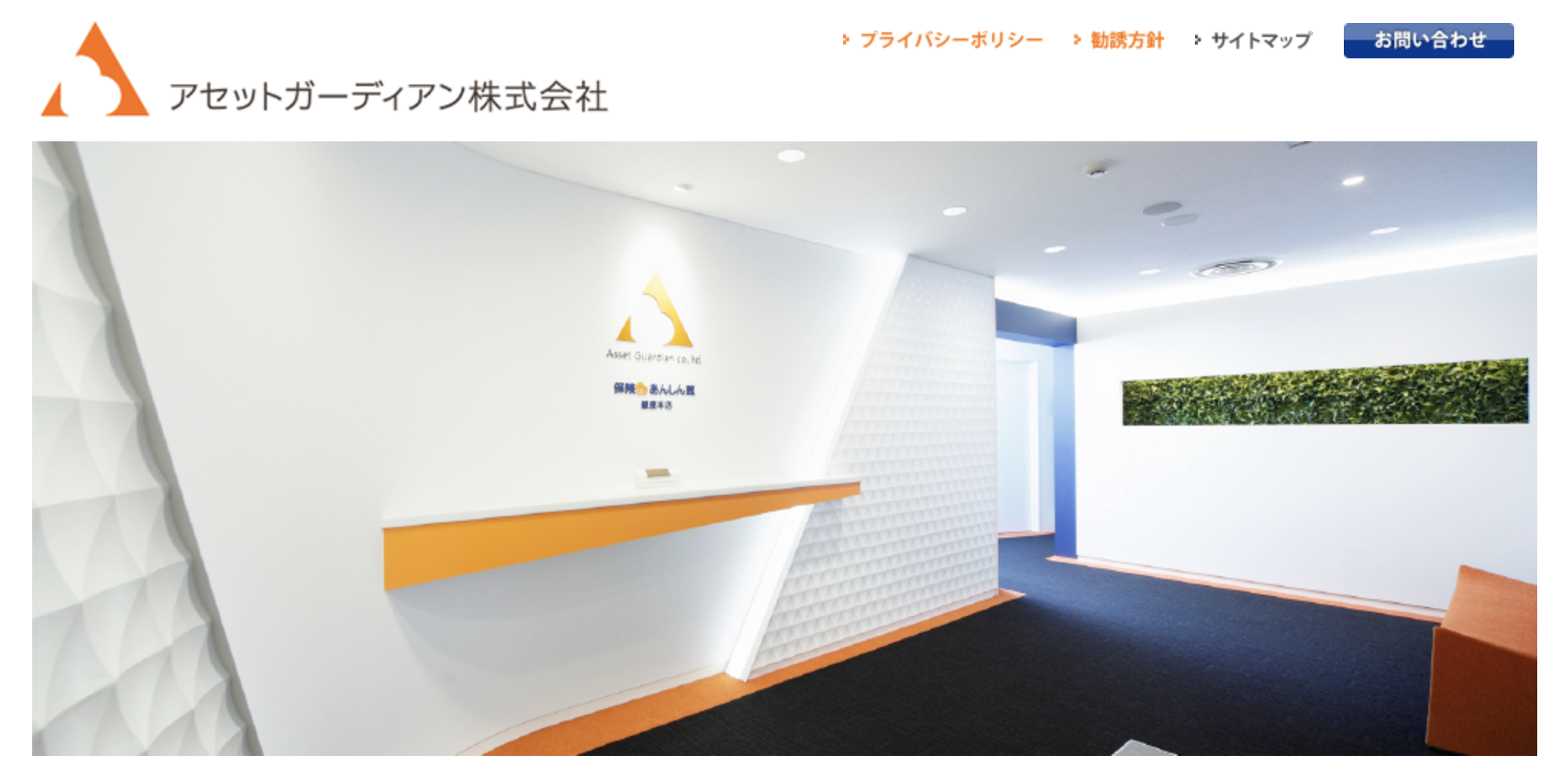 | アセットガーディアン株式会社 | 東京都中央区八丁堀1-11-12 キューブワン八丁堀2階 | 取扱保険会社43社 | 電話 Webフォーム | 生命保険 損害保険 事業承継・相続対策 ファイナンシャルプランニング | 10:00~18:00 (土日祝日・年末年始の休業日を除く) |