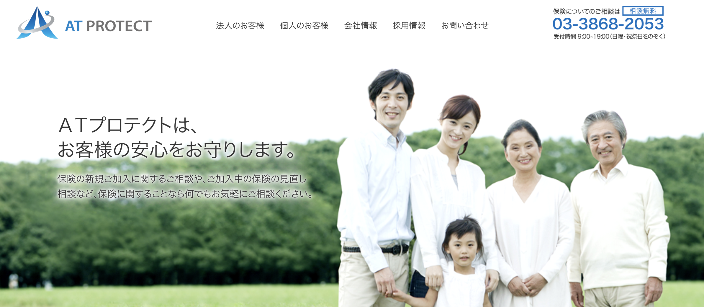 | 株式会社ATプロテクト | 東京都文京区西片二丁目22番18号 | 損保7社+生保9社(計16社) | 対面 電話 メール FAX | 生命保険 損害保険 法人向けリスクマネジメント | 9:00~19:00(日曜・祝祭日をのぞく) |