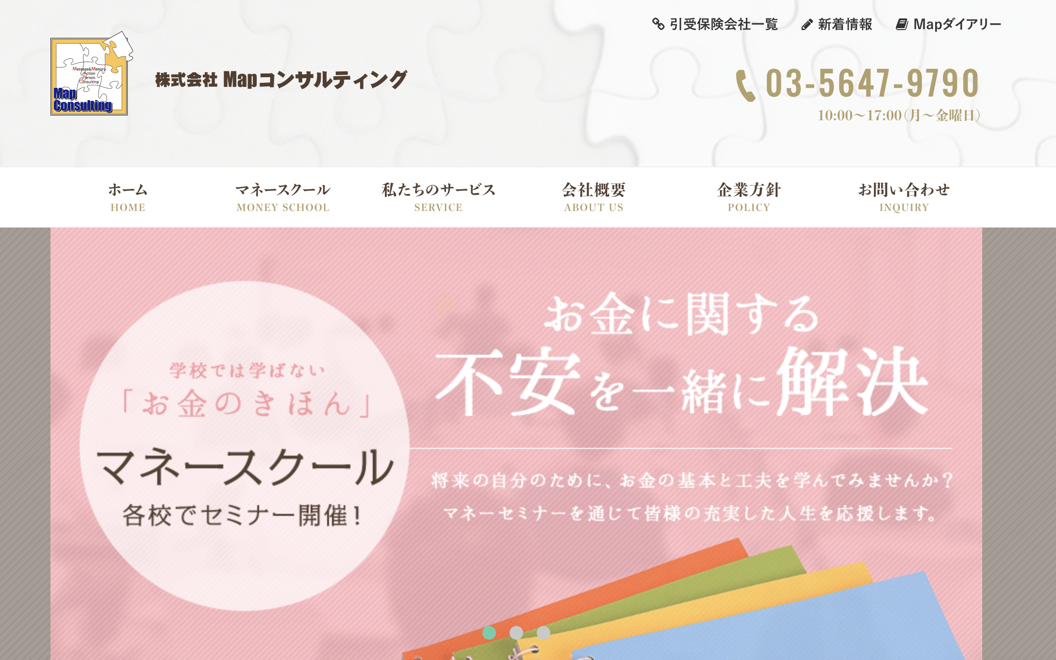 | 株式会社 Mapコンサルティング | 東京都足立区伊興1-24-25 伊興岡田ビル3F | ー | 電話 メール Web | 生命保険 損害保険 マネースクール | 月~金 10:00~17:00 (年末年始・祝日を除く) |