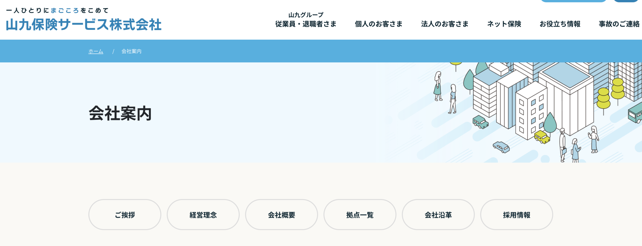 山九株式会社100%出資の保険代理店で、損害保険・生命保険に関する代理業務を掲げています。グループ従業員・退職者向けの制度(団体扱など)から、法人・個人向け、ネット保険まで幅広いメニューが整理されているのが特徴。拠点ごとに営業時間が明記され、東京保険センターは平日8:30〜17:30で連絡が取りやすい運用です。企業の保険管理をまとめて任せたい法人や、職域制度のメリットを活かしたい関係者に向く代理店と言えます。