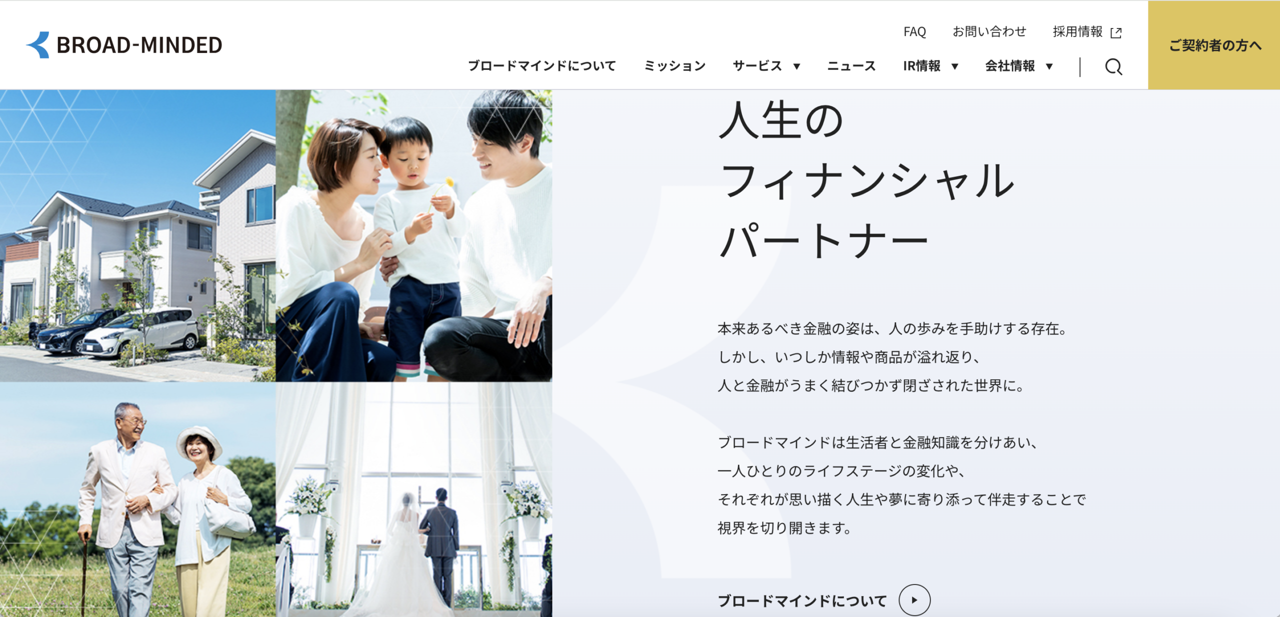 ブロードマインド株式会社は、「金融の力を解き放つ」をパーパスに掲げ、一人ひとりの人生に寄り添うフィナンシャルパートナーです。