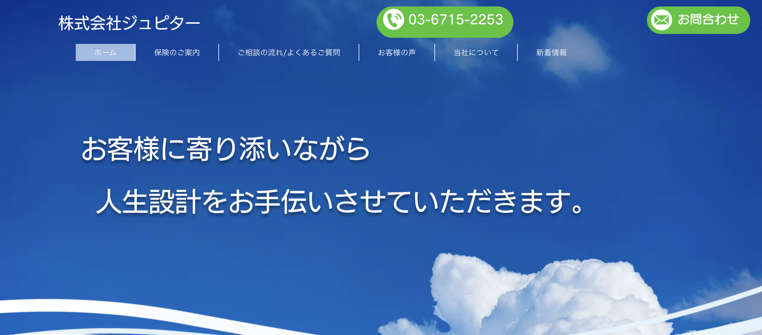 | 株式会社ジュピター | 東京都大田区鵜の木2丁目3-6マイキャスル鵜の木2F | 8社(掲載時点) | お問い合わせフォーム 電話 | 生命保険全般 | 平日10:00~18:00 |